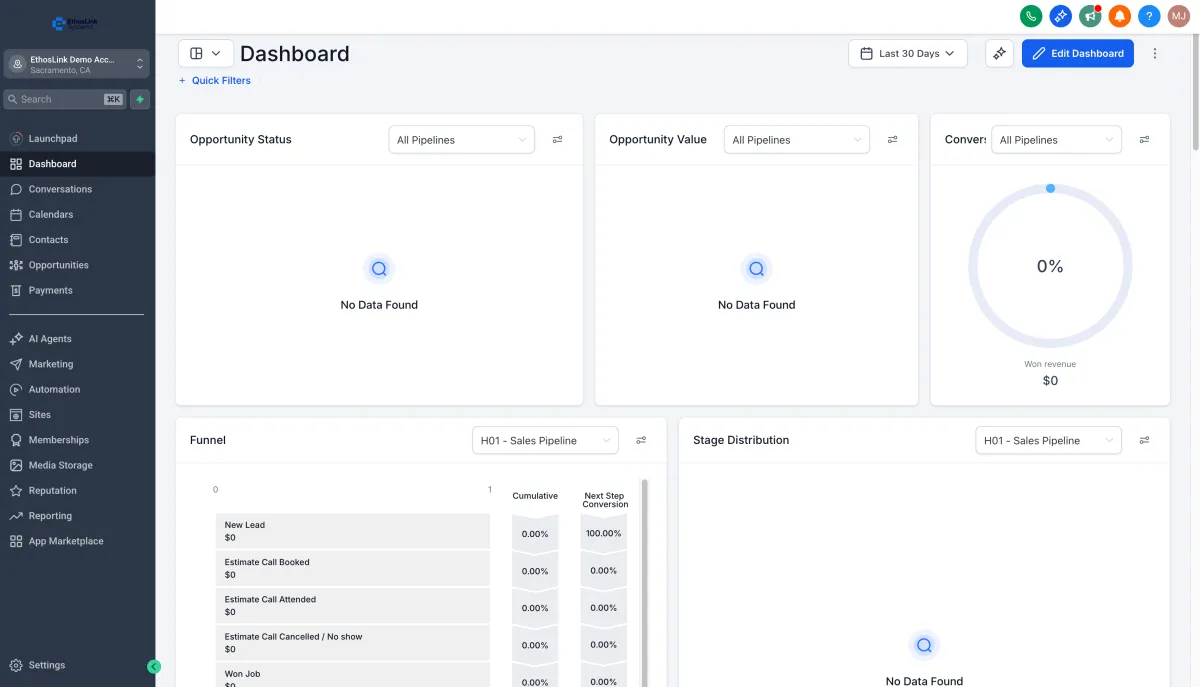 EthosLink Systems installs structured revenue and review management systems using GoHighLevel, automation, AI voice, and conversational workflows so growth creates stability — not chaos.